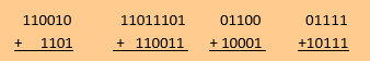 2. Προσθέστε τους παρακάτω δυαδικούς αριθμούς σημειώνοντας και τα τυχόν κρατούμενα που θα προκύψουν: