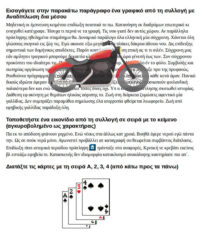 Εξασκηθείτε στην εισαγωγή και τοποθέτηση εικόνων με το Writer.