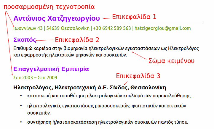 Σε αυτή την άσκηση πρόκειται να δημιουργήσετε ένα βιογραφικό σημείωμα (CV) στο Writer χρησιμοποιώντας τεχνοτροπίες. Εκτός από την εφαρμογή και την τροποποίηση στυλ θα χρειαστεί να δημιουργήσετε και ένα νέο προσαρμοσμένο στυλ.