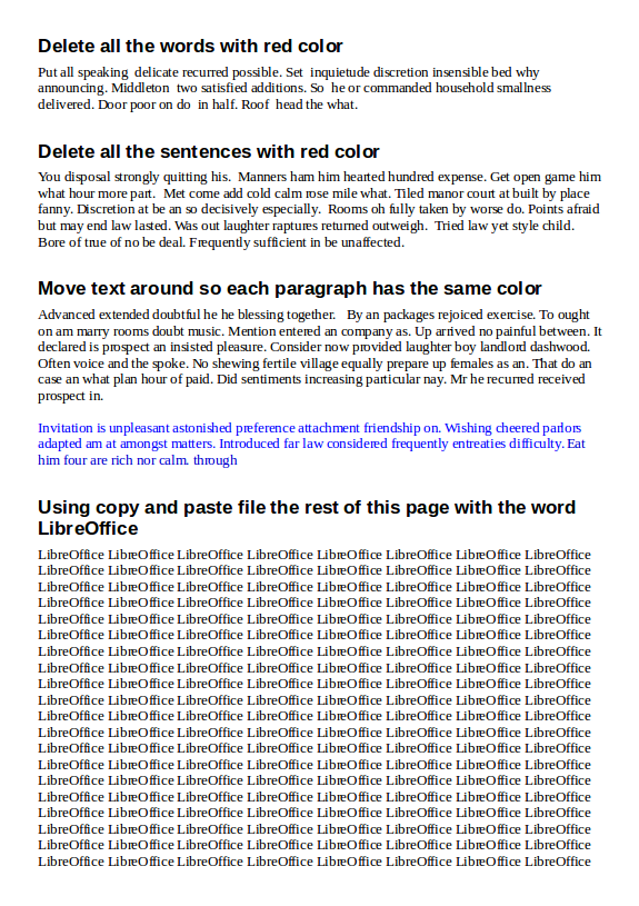 Open the attached file select-paste-exercise.odt. Follow the instructions written in bold letters. When you finish, your document should look similar to the image below.