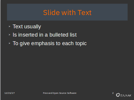 - Open the create-master-slide-start.odp presentation file. You will work in this file.