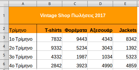 Σε αυτή την άσκηση θα δημιουργήσετε διαγράμματα χρησιμοποιώντας δεδομένα από υπολογιστικό φύλλο. Τα στοιχεία αντιπροσωπεύουν πωλήσεις από μια εταιρεία λιανικής πώλησης ειδών ένδυσης.