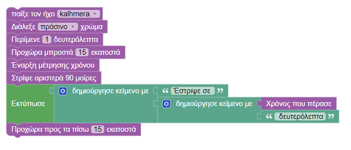 Πώς συμπεριφέρεται το Fossbot όταν "τρέξετε" το παραπάνω πρόγραμμα; Δηλαδή, ποιο θα ήταν το σενάριο που θα αντιστοιχούσε σε αυτό το πρόγραμμα; Θα χρειαστεί να κάνετε αναφορά σε κάθε εντολή.