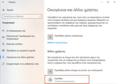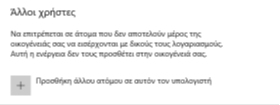 2. Στις επιλογές αριστερά επιλέξτε 3. Στην επιλογή «Άλλοι χρήστες» πατήστε «Προσθήκη άλλου ατόμου σε αυτόν τον υπολογιστή.