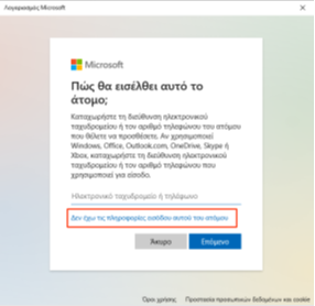 4. Στο παράθυρο Λογαριασμού Microsoft επιλέξτε «Δεν έχω τις πληροφορίες εισόδου αυτού του ατόμου».