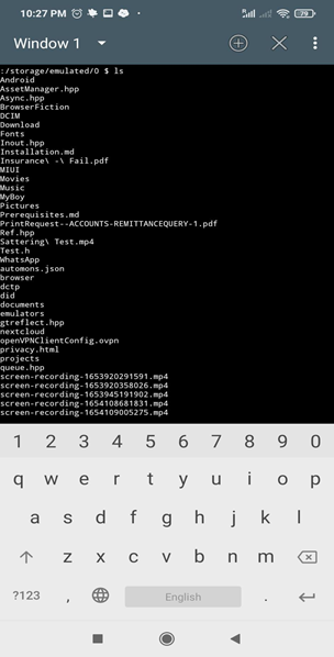 Εικόνα 5.3.3 Αποτέλεσμα εκτέλεσης εντολής ls σε συσκευή κινητού.