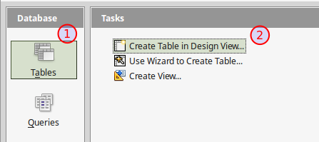 You can create a Table in Base using either the Design View or the Create Table Wizard. It is recommended to use the Design View to better understand the table concept in Databases. To create a table: