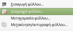 - Ή μπορείτε να χρησιμοποιήσετε το μενού περιβάλλοντος. Κάντε δεξί κλικ στην καρτέλες της Γραμμής φύλλων και επιλέξτε την εντολή Εισαγωγή φύλλου.