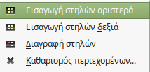 για να εισαγάγετε μια στήλη αριστερά στην τρέχουσα στήλη
