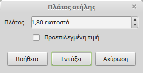 Πληκτρολογήστε τη νέα τιμή για το πλάτος της στήλης (ή το ύψος της γραμμής).