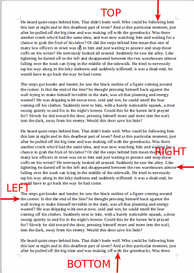 Page margins are the white space around the top, bottom, left, and right of your document. Margins serve two main purposes: