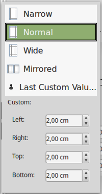 Choose Narrow, Normal, Wide or set custom values.