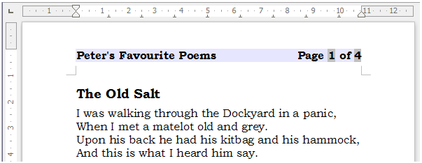 In formal and long documents you normally need to display the current page number in header or footer. Instead of manually typing each page number you should use fields to let LibreOffice automatically display the numbers.