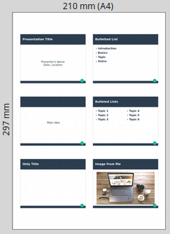 HandoutsPrints many slides in one page. Usually this document is distributed to the audience |