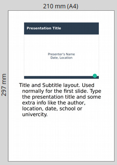 The drawback when using the PDF format is that you loose all transitions and custom effects that you have inserted. Alternatively you can export or save a a presentation to the Microsoft Powerpoint format (pptx). Do this when you are going to present to a computer that does not have LibreOffice installed or a document viewer that supports the ODF format. To export to pptx, use the Fil e> Export menu command.