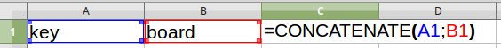 where cell A1 contains "key" and cell A2 contains "board" returns keyboard.