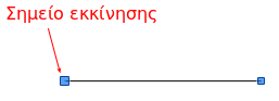 και τοποθετήστε το δρομέα στο σημείο όπου θέλετε να ξεκινήσετε τη γραμμή. Σύρετε το ποντίκι κρατώντας πατημένο το πλήκτρο του ποντικιού. Αφήστε το κουμπί του ποντικιού στο σημείο που θέλετε να τερματίσετε τη γραμμή. Σε κάθε άκρο της γραμμής εμφανίζεται μια λαβή επιλογής, δείχνοντας ότι αυτό το αντικείμενο είναι το αντικείμενο που έχει επιλεγεί. Η λαβή επιλογής στο σημείο εκκίνησης της γραμμής είναι ελαφρώς μεγαλύτερη από εκείνην στο άλλο άκρο της.