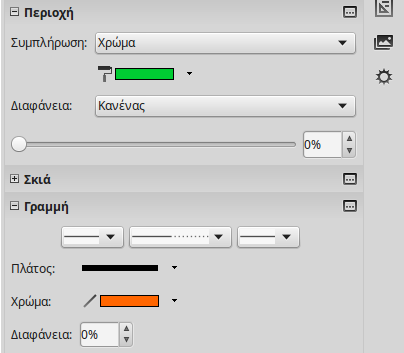 Εκτός από τα χαρακτηριστικά γραμμής ένα ορθογώνιο έχει και χρώμα συμπλήρωσης ή γεμίσματος.