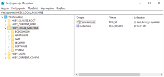 Εικόνα 6.1.2 Ο επεξεργαστής Μητρώου των Windows