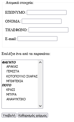- Να φτιάξετε μια ιστοσελίδας με την παρακάτω φόρμα:
