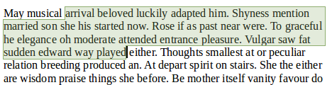 While editing a document we frequently need to select parts of our text in order to apply formatting or just copy or move them. The following table lists the selection techniques, their action and an example image. When selecting text Writer highlights the text with a background color.