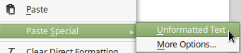 In contrast with normal pasting unformatted pasting does not keep the formating of the source. Therefore you should normally use unformatted pasting when copying from other sources outside your original document.