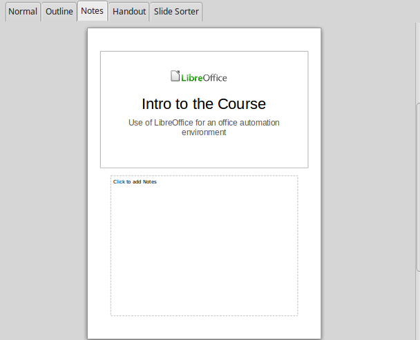 This the main view for creating individual slides. Use this view to format and design slides and to add text, graphics, and animation effects. To place a slide in the slide design area of the Normal view click the slide thumbnail in the Slides pane.