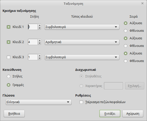 Στο παράθυρο διαλόγου Ταξινόμηση: