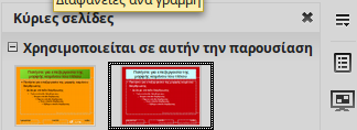 Σημείωση: Το LibreOffice χρησιμοποιεί για την ίδια έννοια τους όρους Κύρια σελίδα και Κύρια διαφάνεια. Οι παραπάνω όροι αναφέρονται σε μια διαφάνεια που χρησιμοποιείται ως πρότυπο για τη δημιουργία άλλων διαφανειών.