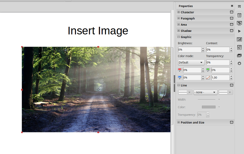 Modifying objects in Impress it's similar as in Writer.  When you select an object, the corresponding functions are automatically activated in the Properties window on the sidebar. We can also format an object from the toolbar, the context menu, or the main menu.