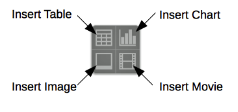 When using a predefined content layout slide you can quickly insert an Image, Table, Chart or Audio/Video file using the button in the autolayout box. Click one of the available options to insert an image, table, chart or movie.
