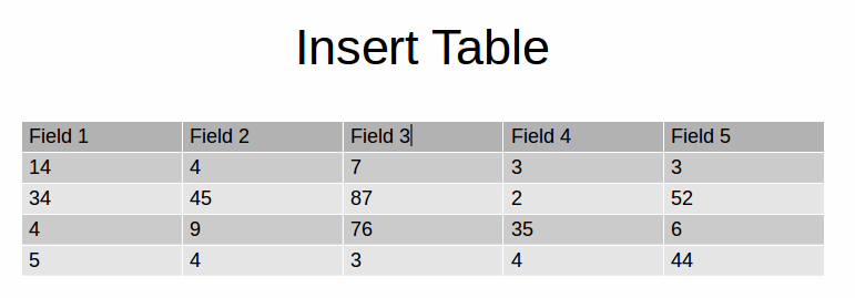 Tables are a powerful mechanism to display large amount of data in a structured and more readable form. When you insert a table in Impress you are asked to specify the number of columns and rows.