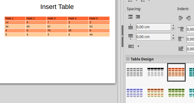 To quickly change the design or style of a table click one of the predefined table styles in the Table Design in the Sidebar.