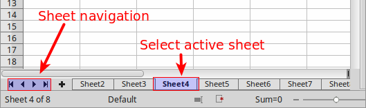 You can select either one or multiple sheets in Calc. It can be advantageous to select multiple sheets, especially when you want to make changes to many sheets at once.