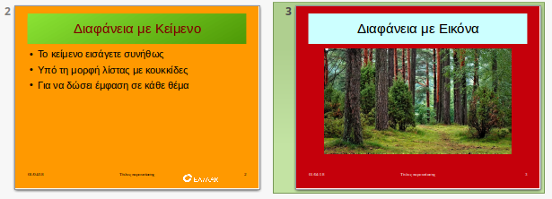 - Ποιοι συνδυασμοί χρωμάτων (φόντο και κείμενο) δίνουν ωραία εμφάνιση στη παρουσίαση χωρίς όμως να γίνεται το κείμενο δυσανάγνωστο;