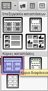 Για να ξεκινήσετε την επεξεργασία μιας κύριας διαφάνειας, κάντε κλικ στο κουμπί Κατάσταση εμφάνισης