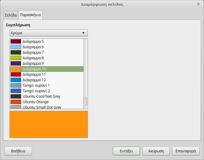 - το χρώμα, την εικόνα ή την διαβάθμιση για το παρασκήνιο
